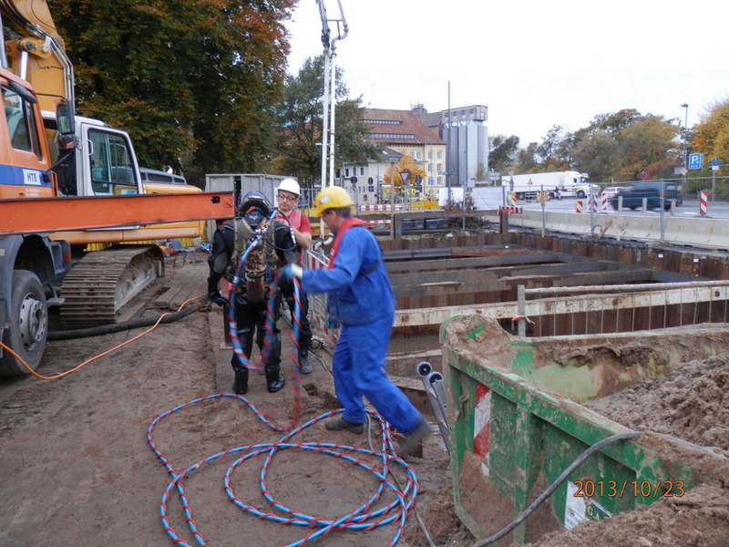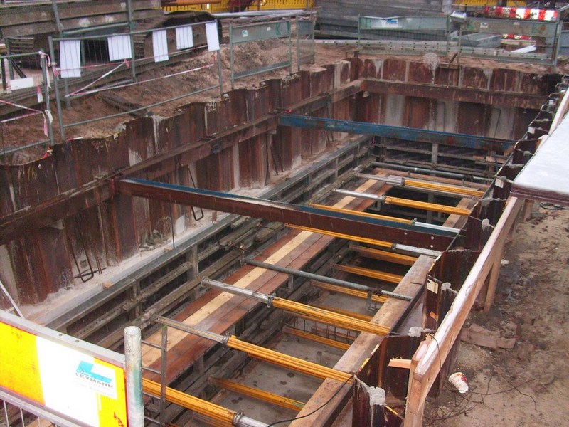 - Regenrückhaltebecken: Spundwandbaugrube mit Unterwasserbetonsohle